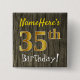 Dieses mögen einfache quadratische KnopfAusrüstungsbeschreibungen eine Mitteilung "NameHeres 35. Geburtstag! ", mit "35." Imitat/nachgemachten Gold ähnlichen Farbtonblick, auf habend Imitat/nachgemachter hölzerner Musterhintergrund. Der Name kann besonders angefertigt werden. Knöpfe wie diese konnten von den Gästen an einem Geburtstags-Party für jemand möglicherweise getragen werden, das ihren fünften Geburtstag dreißig feiert, in dem das Party in einem großen Bereich mit Losen anderen Leutegeschenkes gehalten wird (wie einem Stadtpark oder einem Themapark). [~Z0000167]