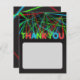 Diese Einladung hat Laser, von den verschiedenen Punkten zu schießen. Einige der Laser werden auf die Wörter gerichtet, als wenn, um die Wörter zu bilden danke. Die glühenden Wörter des Imitats danken Ihnen ist nicht editable. Farbpalette des Neonrotes, des Grüns und des Blaus über einem schwarzen Hintergrund. Raum für ein persönliches danken Ihnen Mitteilung.