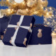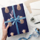 Imitat-Rosen-Goldananas auf Marine-Blau Geschenkpapier