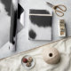 Stilvolle Geschenkverpackung, in einem simulierten, Schwarzweiss-Kuhfellentwurf.