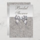 Elegante personalisierte Bridal-Dusche-Einladungen mit einer schönen glänzenden silberfarbenen Bildsequenz, Schmuckstücken, Edelsteinen, niedlichen, raffinierten silberfarbenen Bogen und Bändern und hübschen digitalen Diamanten-Schmuck und dunkelsilbergrauem Farbtext auf einem silberfarbenen Hintergrund.Beachte: Alle Einladungen auf Zazzle haben flache gedruckte Bilder. Diese eleganten, glamourösen Einladungen sind auf beiden Seiten dekoriert. Schöne, stilvolle, schicke, trendige, moderne, glitzernde und Glamour-Einladungen. Text, Schriftart und Farbe des Schriftartes können individuell angepasst werden. Wenn Sie Hilfe bei der Anpassung Ihres Produkts benötigen, kontaktieren Sie mich bitte über meinen Shop. Ich werde Ihnen gerne helfen.