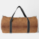 Eine Tasche mit braunem Lederhintergrund aus Imitat.