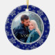 Das ist ein besonders elegantes Weihnachtsschmuck, das Ihr Foto in einem hübschen Rahmen silberner Schneeflocken auf blauem Hintergrund zeigt. Der Rahmen des Schneeflockenmusters hat ein innen liegendes Rautenfutter im Imitat. Auf der Rückseite des Ornaments befindet sich Ihr eigener Text in Silber auf einem blauen Hintergrund. Sagen Sie, was Sie wollen! Ein elegantes und festliches Sake-Geschenk für Neuvermählte oder ein Paar. *Bitte beachten Sie, dass das Bild gedruckt ist und keinen Glitzer oder Edelsteine enthält.*