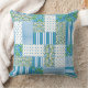 Ein hübsches Kissen oder ein Kissen mit einem rustikalen Imitat Patchwork aus Blumen-, Polka-Punkt-, Streifen- und Karo-Gingham-Mustern in Blau, Grün und Weiß: Teil der Posh & Painterly 'Morning Glory' Kollektion. Dieses Muster passt in alle Kissengrößen.