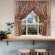 Dieses wunderschöne "Fake View" Poster ist so groß wie ein echtes Fenster und wird Ihnen helfen, sich in Tudor, Elizabethan, Großbritannien, oder vielleicht in der Zeit von Jane Austen zu fühlen. Die halbschieren Vorhänge mit goldenem Brokat-Design lassen eine klassische englische Szene jenseits der Welt erkennen. Eine historische Hütte ist von grünen Bäumen umgeben. Diese schöne Sommerszene wurde in Devon im Süden Englands gefangen genommen. Die Vorhänge im Fenster haben ein verziertes Design und elegante Krawatte, um der Szene einen prächtigen Look zu verleihen.