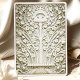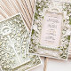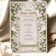 Inspiriert durch die Eleganz des Jugendstil-Designs, bietet diese Hochzeitseinladung einen faszinierenden Blumenrahmen mit schillernden Kurven, Elfenbeinblüten und weichem grünem Blattwerk. Das prächtige Aussehen erinnert an Vintage Schnitzwerke oder luxuriöse Gipsarbeiten, die eine taktile Illusion schaffen, die sowohl Romantik als auch Eleganz verleiht. In der Mitte werden Ihre Hochzeitsdetails in einem gepflegten, eleganten Schriftart-Layout präsentiert, gerahmt durch symmetrische Blumenverzierungen und ein dekoratives Wappen-Motiv. Das atemberaubende botanische Reliefmuster wird auf der Rückseite der Einladung fortgesetzt und ist damit ein echtes Showstück für Ihren besonderen Tag. Dieses Design eignet sich ideal für romantische Hochzeiten in Gartenanlagen, historischen Anwesen oder Veranstaltungen mit Vintagen, eleganten oder Jugendstil-Themen und strahlt zeitlose Schönheit und künstlerischen Charme aus.