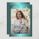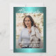 Einzigartige und trendige Gratulationen Graduieren Ankündigung und Feiern Party Einladung Karte, mit einem klassischen Imitat glänzend aqua türkis blau grün Hintergrund. Mit Raum zum Anpassen oder Personalisieren mit einem Foto, den Namen des Absolventen, Klasse Abschluss Jahr, High School, künftige Uni oder Universitätsname, und feiern Party-Event-Informationen. Lass der Familie, Freunden und Nachbarn, dass es einen glücklichen Absolventen gibt, der bereit ist, die Welt zu erobern, und laden Sie alle ein, das glückliche Ereignis mit Ihnen zu feiern!