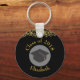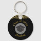 Ein personalisierter Schlüsselanhänger, der sagt: Klasse von 20xx. Entwickelt mit Fake Gold Konfetti Glitzer. Set auf schwarzem Hintergrund. Illustriert mit einem schwarzen Graduierdeckel mit einem halbtransparenten Kreis dahinter. Elegant und elegant.
