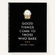 Chic Rezept Notebook in Schwarz-Weiß und Imitat Gold Glitzer mit "gute Dinge kommen zu denen, die backen" geschrieben auf dem Cover in einem modernen Schriftart unter einem weißen Kuchen mit Zuckerguss mit kleinen goldenen Herzen. Personalisieren Sie mit Ihrem Namen.