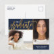 Kostengünstige, individuell bedruckte Postkarten für Abschluss, personalisiert mit Ihren Fotos und Text. Dieses elegante, moderne Design besticht durch einen modernen Script-Schriftart mit Goldfolieneffekten der Imitate. Fügen Sie 2 Senior Fotos zusammen mit Ihrem Studienjahr, Namen und Schuldetails oder jedem anderen benutzerdefinierten Text hinzu. Verwenden Sie die Entwurfswerkzeuge, um eine beliebige Hintergrundfarbe auszuwählen, mehr Fotos hinzuzufügen oder die Schriftart und Farben des Textes zu bearbeiten. Dieses schicke Design eignet sich perfekt für Schulklassen, Schulklassen oder Unis!