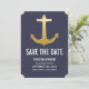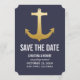 Moderne Imitate Gold Foil Nautic Anker Save the Date Navy Blue