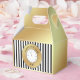 Diese extravaganten Gefälligkeitsboxen sind die ideale Wahl für ein elegantes, glänzendes Silvesterabend-Party. Ein kreisförmiges Imitat mit Goldfolienbild (bitte beachten Sie, dass das Gold keine Goldfolie ist) grenzt an eine Uhr, die die Zeit bis Mitternacht auf fünf Minuten anzeigt. Die Wörter "Happy New Year 2016" kurvieren um die Ränder der Uhr in elegantem Art Deco Text, aber Sie können die Wörter leicht ändern, indem Sie die Vorlage. Die eleganten, schwarz-weißen Streifen bilden den Hintergrund der Vorder- und Rückseite, und die Erholung der Schachtel ist in den gleichen Imitaten mit Goldfolie bedeckt. Diese würden auch perfekt zu einem Silvesterabend-Party der 1920er Jahre passen. Beeindrucken Sie Ihre Gäste mit diesen! Um alle passenden Elemente in diesem Design zu sehen, klicken Sie einfach auf eines der Fotos in der folgenden Auflistung: