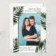 Klassische tropische Palmen Blätter mit Imitaten Goldrahmen Hochzeit speichern das Datum Foto-Karte.