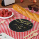 Dieses Silvester Party Papier Platte hat einen schwarzen Hintergrund Akzent mit Imitaten Gold Glitzer Saiten. Benutzerdefinierter Skripttext ermöglicht die Personalisierung mit Ihrem Namen.