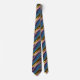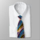 Eine Krawatte mit abstraktem Design mit Imitaten mit goldenen, lila und blauen Streifen.