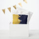 Ein elegantes und elegantes Imitat mit goldenen Pinselstrichen mit marineblau-blauem Hintergrund. Dieses Design zeichnet sich auch durch eine moderne Anordnung der personalisierten Initialen der Braut und des Bräutigams aus. Diese einfache Farbkombination schafft einen raffinierten, trendigen und schicken Stil. Elegantes Hochzeitsgunst im Taschendesign mit modernen Elementen. Das einfache Einrichten der Typografie verleiht ihr einen besonderen Stil. Auch die passenden Hochzeitseinladungen und andere Schreibwaren sind verfügbar. Passen Sie die Initialen, Namen und das Hochzeitsdatum an.
