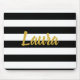 Personalisieren Sie Imitate (nicht Folienskripte) mit Namen oder anderen gewünschten Texten in der Mitte. Im Hintergrund sind schwarz-weiße Streifen.