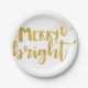 Imitate Gold Typografie Frohe und helle Weihnachtszeitung Teller Feel festlich jedes Mal, wenn Sie diese lustigen, Imitate Gold "fröhlich und hell" Papier Teller! Entworfen von Pro-Designer BK Thompson für Cedar und String; bitte kontaktieren Sie uns, wenn Sie Hilfe benötigen.
