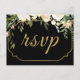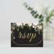 Imitate Gold Watercolor Floral Black Wedding RSVP Postkarte