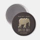 Stilbraun Tuxedo in Kombination mit eleganten, einzigartigen Imitaten Goldelefant - Symbol für Liebe, Fruchtbarkeit und viel Glück. Moderne, einfache, einzigartige Hochzeit retten den Dattelmagneten mit individuellen Namen von Braut und Bräutigam.