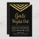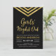 Moderne Junggeselinnen-Abschied-Einladung mit einem eleganten geometrischen Zickzack und das Wort "Girls' Night Out" in Imitat Gold vor einem schwarzen Hintergrund. Die Karte enthält ein passendes Muster auf der Rückseite. Karo die passenden Elemente hier http://www.zazzle.com/collections/modern_faux_gold_chevron_celebration_collection-119531050277382712?rf=238364477188679314 Personalisieren Sie sie, indem Sie den Platzhalter-Text ersetzen, um Ihre Informationen hinzuzufügen. Für weitere Optionen klicken Sie auf die Schaltfläche "Anpassen". *Bitte beachten Sie, dass das Zazzle-Wasserzeichen, das in der Zoomvorschau angezeigt wird, NICHT auf dem gedruckten Endprodukt erscheint. © Rosewood and Citrus