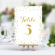 Fügen Sie Ihrem Hochzeitsempfang eine Touch von Schimmer und Eleganz mit diesen eleganten Tischnummern hinzu. Mit einer zarten Streuung von Imitaten Gold Glitzer Konfetti Punkte auf einem knusprigen weißen Hintergrund, schaffen diese Karten einen modernen und schicken Look. Persönlich mit Ihren Tischnummern für eine gemütliche und unvergessliche Tischumgebung.