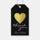Romantisches Design eines Imitats goldgelbes Herz mit dem Wort 'danke', auf schwarzem Etikett , personalisiert mit Ihren Namen