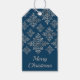 Desteis originelles Design einer dekorativen Schneeflocken in Imitaten silbergraue Folienstruktur auf blauem Hintergrund. Auf der Vorderseite befindet sich ein personalisierbarer Textbereich, der nun lautet: "Frohe Weihnachten" und auf der Rückseite befindet sich ein "von und zu" Textfeld. BITTE BEACHTEN SIE: Das Design ist ein digital erstelltes Bild, das auf dem Produkt gedruckt wird.