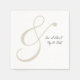 Imitate handgeschriebene Notation Hochzeitsnapkins mit großen übertriebenen Ampersand in beige und kausalen Imitate handgeschriebene Skriptbride und Bräutigam-Name und Hochzeitsdatum in schwarz.