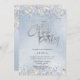 PixDezines Sweet 16 mit gestuften Diamanten und handgeschriebenen silberfarbenen Schriften. Akzentriert mit Imitaten Hologramm Konfetti, irisierende dustigen blauen Hintergrund.