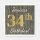 Dieses einfache Papier-Serviette-Design enthält eine Botschaft wie "Jessica's 34. Geburtstag!", mit dem "34." ein goldenes Aussehen in Imitaten auf einem Imitat-Holzaussehen Hintergrund. Der Name kann personalisiert sein. Es könnte bei einer Geburtstagsparty für jemanden verwendet werden, der seinen vierunddreißig Geburtstag feiert. [~Z0000084]
