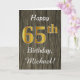 Dieses schlichte Design der Geburtstagskarte beinhaltet die Meldung "Happy 65 th Birthday", mit dem "65.", das ein Imitat goldähnlich aussieht. Es verfügt auch über einen personalisierten Namen und ein Imitat Holz Aussehen Hintergrund. Es könnte jemandem gegeben werden, der seinen fünfundsechzigsten Geburtstag feiert.