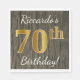 Dieses einfache Papier-Serviette-Design enthält eine Nachricht wie "Riccardo’s 70. Geburtstag!", mit dem "70.", das ein goldenes Aussehen von Imitaten auf einem Imitat-Holzaussehen-Hintergrund hat. Der Name kann angepasst werden. Es könnte auf einer Geburtstagsfeier für jemanden verwendet werden, der seinen siebzigsten Geburtstag feiert. [~Z0000084]