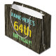 Dieses lustige Geschenktütendesign beinhaltet eine Nachricht wie "NAME-HERE'S 64. BIRTHDAY!", in der der Name personalisiert werden kann. Der Hintergrund ist mit einem rustikalen, braunen Holzkornmuster aus Imitat gestaltet. Der anpassbare Text der Nachricht weist Farben wie Blau, Gelb und Grün auf und hat ein Aussehen, das durch das inspirierte, gestrichelte Schriftzeichen ersetzt wird. Eine Geburtstagsgeschenk-Tasche wie diese könnte eine lustige Art sein, ein Geschenk für jemanden einzupacken, der seinen vierundsechzigsten Geburtstag feiert. [~Z0000319]