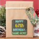 Dieses lustige Geburtstagsdesign-Aufkleber enthält eine Nachricht wie "HAPPY 67. BIRTHDAY, NAME-HERE!", in der der Name personalisiert sein kann. Der Hintergrund ist mit einem rustikalen, braunen Holzkornmuster aus Imitat gestaltet. Der anpassbare Text der Nachricht weist Farben wie Blau, Gelb und Grün auf und hat ein Aussehen, das durch das inspirierte, gestrichelte Schriftzeichen ersetzt wird. Sticker wie diese könnten vielleicht als Geschenk gegeben werden, oder vielleicht als Dekorationen bei einer Geburtstagsparty für jemanden verwendet werden, der seinen siebenundsechzigsten Geburtstag feiert. [~Z0000296]