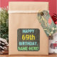 Dieses lustige Geburtstags-Design-Aufkleber enthält eine Nachricht wie "HAPPY 69. BIRTHDAY, NAME-HERE!", in der der Name personalisiert sein kann. Der Hintergrund ist mit einem rustikalen, braunen Holzkornmuster aus Imitat gestaltet. Der personalisierte Nachrichtentext weist Farben wie Blau, Gelb und Grün auf und hat ein Aussehen, das durch das Anbringen von gestrichenen, gestrichelten Buchstaben inspiriert wird. Sticker wie diese könnten vielleicht als Geschenk gegeben werden, oder vielleicht als Dekorationen bei einer Geburtstagsparty für jemanden verwendet werden, der seinen neunundsechzigsten Geburtstag feiert. [~Z0000296]