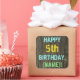 Imitate Holz, Textanzeige gestrichen, 5. Geburtsta Quadratischer Aufkleber