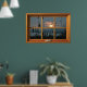 Imitate Holzfenster-Illusion - Vogelschloss Poster