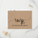 Dieses einfache Imitat Kraftmenü UAWG postcard ist ideal für eine rustikale oder moderne Themenhochzeit. Das minimalistische Design besticht durch einen eleganten Schriftart mit Pinselskripten und ein reizendes Frauenherz. Diese Hochzeitskarte frage den Gästen bequem, was sie am Empfang essen möchten. Bitte beachten Sie: Dieses Papier ist nicht auf echtes Kraftpapier gedruckt. Die Vorderseite der Postkarte weist eine hochwertige Grafik auf, die wie Kraftpapier aussieht.