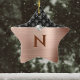 Dieses Glam-Design bietet einen bürstenbehafteten Kupferstich mit einem Monogramm und simuliertem Leder und Imitaten in rautengeprägtem Polsterlook. Die beiden Texturen werden durch ein Imitat Silber und Diamant Kette getrennt. Dieses elegante Kupferdesign verleiht Ihrem Dekor Farbe und Interesse. Dieses Ornament ist in Sternform dargestellt, aber auch Herz, Quadrat und Rundformen sind vorhanden, sowie Metall- und Glasoptionen.