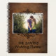 Planen Sie Ihre Hochzeit mit dieser rustikalen, braunen, Imitat Lederdecke mit Fotoplatte vorne mit individuellem Text. Schwarze, elegante Filigree-Schriftrollen beleuchten Ihr Foto.