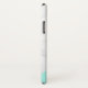 Moderne und individuell anpassbare iPhone-Gehäuse mit weißem Imitat Marmorboden mit aqua-blauem Akzent. Andere Farben sind verfügbar.