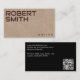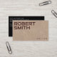 Eine moderne, einfache Visitenkarte mit einem Imitat im Kraftpapier-Stil mit Imitaten, die vorn Text und Platz für Ihren Namen, Beruf, Social Media Handle, Website, Postanschrift und Telefonnummer geprägt haben.