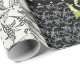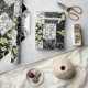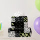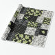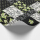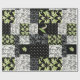 Ein Stück stilvolles Wrapping Paper mit einem Imitat-Patchwork-Muster im Jugendstil, mit Lilies-of-the-Valley auf schwarzem Hintergrund; aus der Posh & Painterly Kollektion "For the Liebe of Lilies".