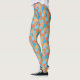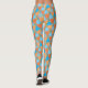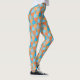 Ein Paar schicke Leggings, mit einem rustikalen Imitat-Flickwerk aus Hexagonen von würzigen Orangen-, Rot- und Gelbblüten auf einem himmelblauen Hintergrund, gemischt und mit koordinierenden Streifen, Polka-Punkte und Karo-Mustern. Teil der Posh & Painterly "Orange Fizz" Kollektion. Sie können diese Leggings anpassen, indem Sie die Skala der Musterfliese ändern, oder sie rotieren, für ein ganz anderes Aussehen.