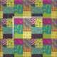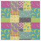 Dieser bedruckte Stoff hat das Aussehen eines Patchwork-Quilts mit verschiedenen farbigen Fliesen-Grafiken in fett, leuchtenden Farben gemustert mit hübschen Blumendarstellungen in einem boho maximalistischen Stil.