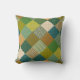 Ein chic Cushion oder Kissen, mit einem Imitat Patchwork-Muster aus Stammesmustern, Streifen und Polka-Punkten in Grün, Rusty Red, Navy Blue und Old Gold; aus der Posh & Painterly 'Jungle Drums' Kollektion.