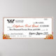 Gedenklicher Fake-Riese-Karo für die Abgabe an Wohltätigkeiten oder besondere Mitarbeiterbonus oder Jubiläumsveranstaltungen während der Herbst- oder Herbstsaison oder für Erntedank- und Food-Banken-Wohltätigkeiten, füllen Sie einfach Ihr Logo, personalisierte Texte und Dollarbeträge aus oder löschen Sie sie und schreiben Sie bei Bedarf per Hand mit einem Marker oder Sharpie ein.