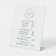 Elegantes Preisschild und Service-Podestal zeigt Ihre Dienstleistungen, Preisliste oder Geschäftsinformationen unter einer Imitat-Rose Gold abstrakt Circle Logo, die Ihren Namen und/oder Geschäftsnamen. Enthält vier individuell anpassbare Überschriften und Textfelder.