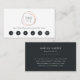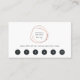 Chic Loyalitätskarten für Makeup Künstler, Ästhetiker, Friseure oder Salons tragen ihren Firmennamen in einem Imitat, Rose goldene Folie abstrakter Kreis Element auf weißem Hintergrund. Fügen Sie unten Ihr Kundenbindungsangebot mit sechs Lochkreisen hinzu und personalisieren Sie den Rücken mit Ihren Kontaktdaten.